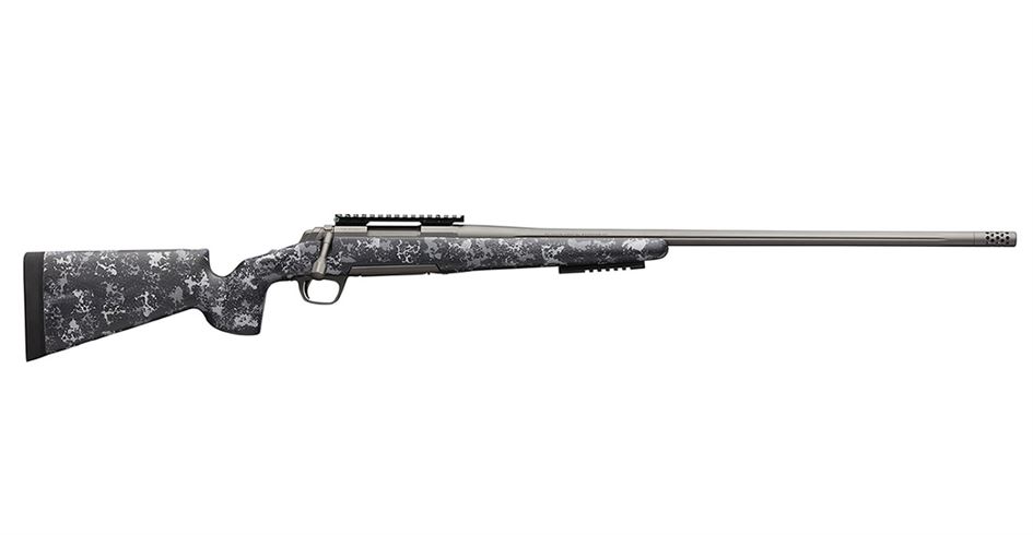 This special X-Bolt Hell’s Canyon bolt-action rifle from Browning features a McMillan Game Scout stock with Desert Carbon Ambush finish, 26″ fluted heavy sporter barrel with 5/8-24 threaded muzzle brake, Burnt Bronze Cerakote finish on action/barrel, 20 MOA Picatinny scope mount. McMillan Game Scout gives a sporter style stock with tactical long range features of a vertical pistol grip and high comb. McMillan stocks are US Marine proven tough, now on the Browning X-Bolt.