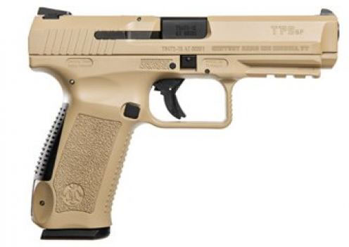 The TP9SA is a single action, striker fired pistol featuring a cold hammer forged barrel, an ambidextrous top-slide-mounted decocker, 3-dot steel sights with adjustable dovetailed rear sight, loaded chamber indicator, striker status indicator, reversible magazine catch, interchangeable back straps (2 sizes) and an MIL-STD-1913 Picatinny rail. It has a Cerakoted slide, an improved single action trigger, two types of stippling, and a larger trigger guard for easier use with gloves. It has an OAL of 7.5 in . The TP9SA It comes with two 18-round magazines, a poly holster, paddle attachment, belt attachment, cleaning rod, brush, lockable hard case, and a limited lifetime manufacturer’s warranty. Not available for sale in CA; DC; HI; MA; NY; Cook County, IL or where prohibited by law.