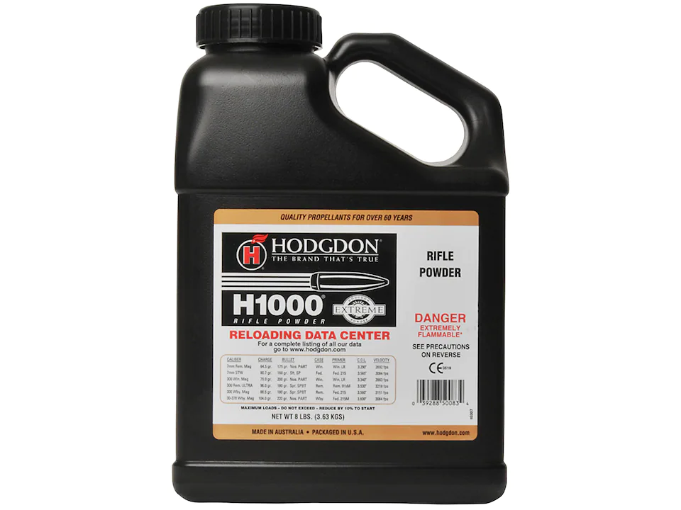 Hodgdon Powder – H1000 8lb in stock. Hodgdon Powder offers one of the largest selections of quality smokeless propellants for rifle reloading. These powders are very popular with high power and long-range shooters, varmint hunters, and benchrest shooters.