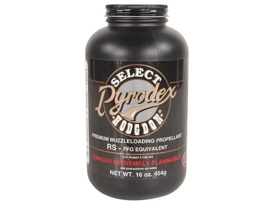 Hodgdon Pyrodex Select is an enhancement of our RS grade of Pyrodex. Using RS or 2F data in a volumetric measure, Select can significantly reduce group size. Wonderful news to the deer hunter is that Select performs well with sabots and conical bullets. Select has also become a favorite among many blackpowder cartridge shooters because of its exceptional consistency. For target use it is the “best of the best”.